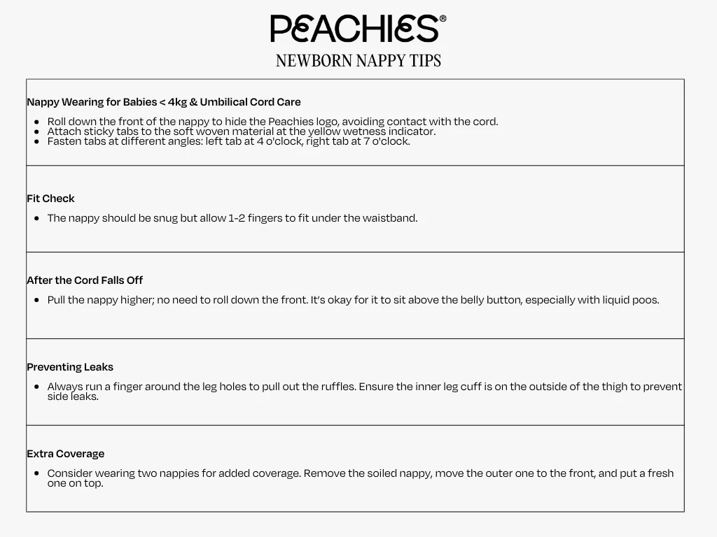 I’m Morgan, Peachies Co-Founder, and my son was born weighing just 2.5kg. As you can imagine, we’ve been using Peachies from day one so to help navigate the early days with little ones that are under 4kg, I’ve put together a one-pager with some useful tips. If you still have questions, please don't hesitate to reach out to our Concierge Team: [email protected].